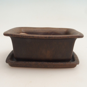 Bonsai tál + csészealj H11 - 11,5 x 10 x 4 cm. - barna