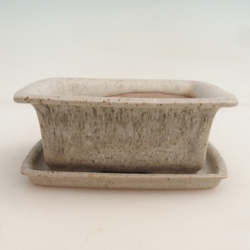 Bonsai tál + csészealj H11 - 11,5 x 10 x 4 cm. - bézs színű