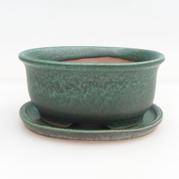 Bonsai tál + csészealj H11 - 11,5 x 10 x 4 cm. - zöld