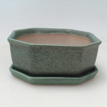 Bonsai tál + csészealj H13 - 12,5x12,5 x4,5 cm. - zöld