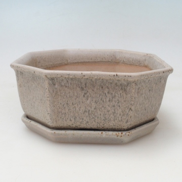 Bonsai tál + csészealj H13 - 12,5x12,5 x4,5 cm. - bézs színű