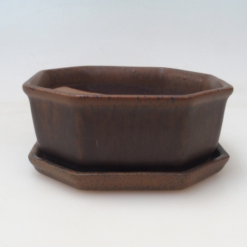 Bonsai tál + csészealj H13 - 12,5x12,5 x4,5 cm. - barna