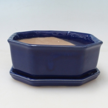 Bonsai tál + csészealj H13 - 12,5x12,5 x4,5 cm. - kék