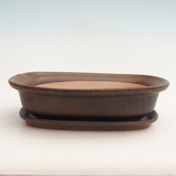 Bonsai tál + csészealj H25 - 23 x 17 x 5,5 cm. - barna