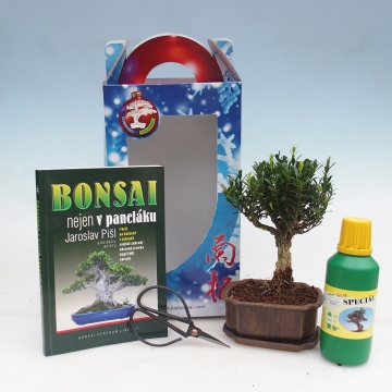 Szobai bonsai ajándékdobozban Buxus harlandii - parafa buxus
