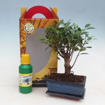 Szobai bonsai ajándékdobozban Ficus retusa - Kislevelű fikusz